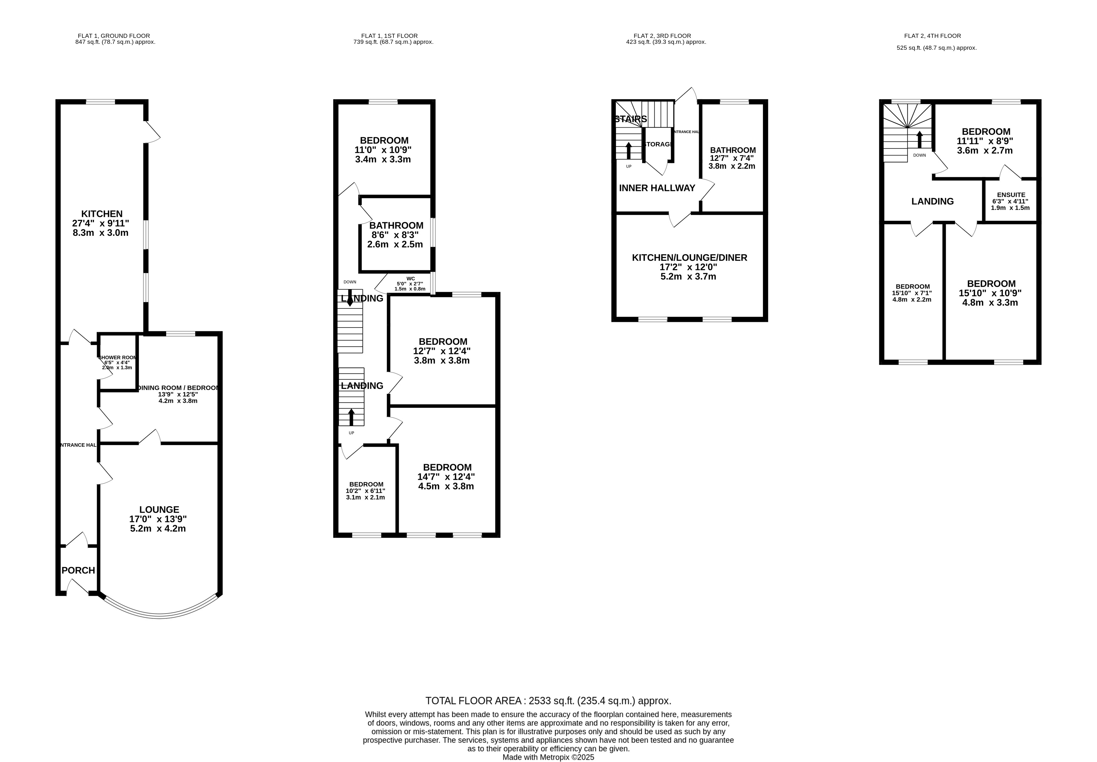 Flat 1 - 4/5 bedrooms and two bathrooms. Monthly rental income of £1,350.