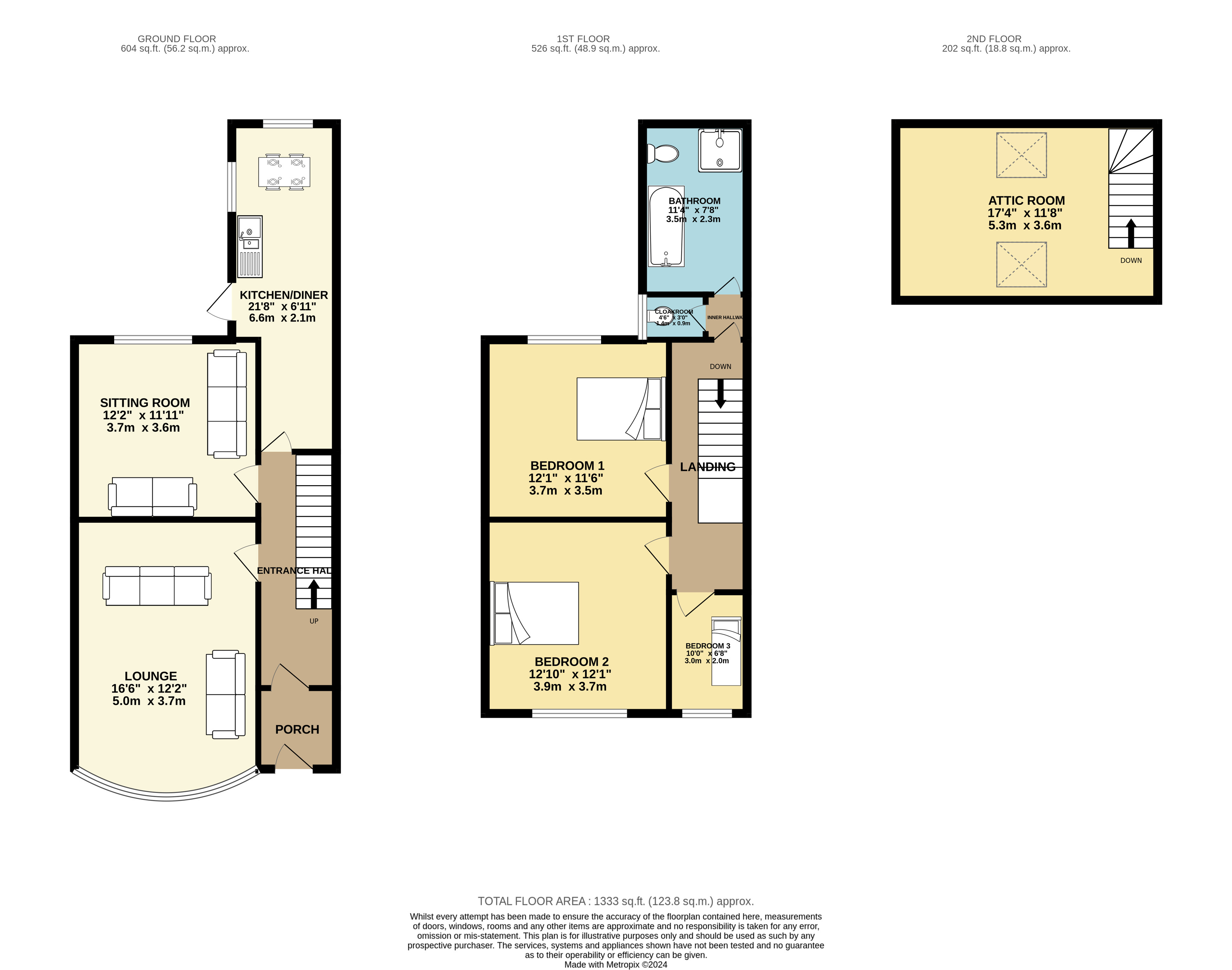 Upstairs there are three bedrooms, two of which are generous doubles plus a single bedroom / study. The bathroom has been recently replaced and features a roll top bath, large shower cubicle, sink and toilet.