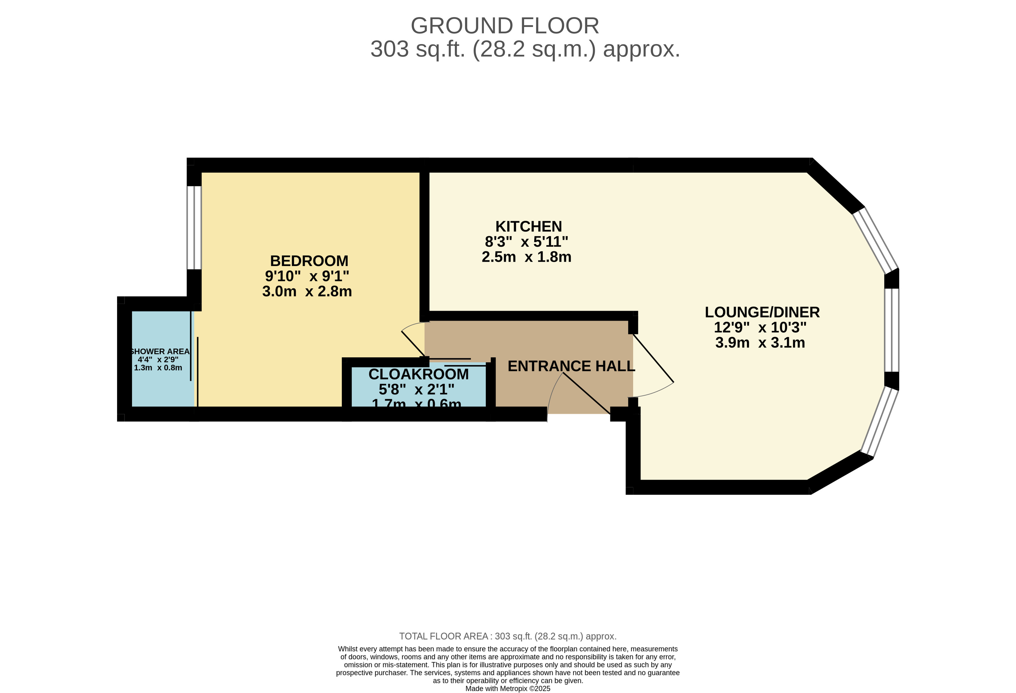 SHOWER ROOM Wall mounted electric shower with tray below. Extractor facility.