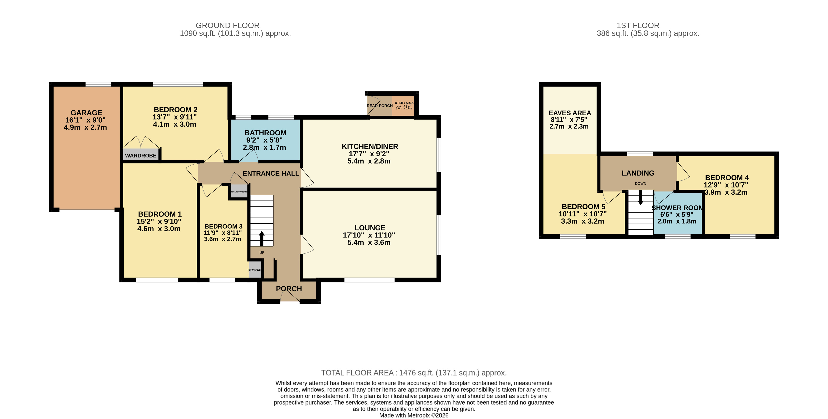 5 Bedrooms plus 2 Modern Bathrooms